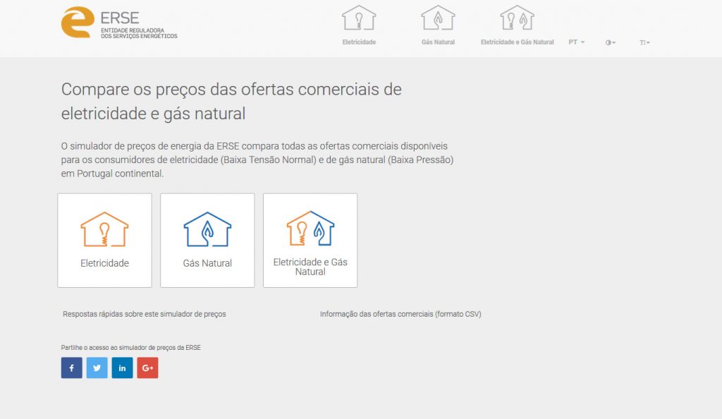 O simulador da ERSE compara os preços das ofertas comerciais de eletricidade e gás natural ajudando o consumidor na escolha do seu comercializador. O simulador inclui todas as ofertas do mercado liberalizado em Portugal Continental para as seguintes características: